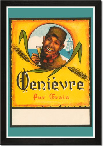 This high quality art poster is framed by our professional framers, and arrives fully assembled and ready to hang. The durable black wood frame measures approximately 20 x 30 inches. A clear plexiglass facing protects your poster and adds a lusterous shine. Posters are printed on heavy-stock, semi-matte paper producing the best possible combination of color vibrancy and durability. All posters from ClassicPix are produced and framed on demand one-at-a-time, just for you - not mass-produced. Our personal hands-on processing assures the highest quality. To see all of our prints and posters, click on ClassicPix above. About this image: An early Dutch pure grain liquor label featuring a Dutchman looking closely at a glass of liquor. The background features a sailboat. This type of liquor is called Jenever, a juniper-flavored and strongly alcoholic traditional liquor of the Netherlands, Belgium and Northern France (Nord departement), from which gin evolved.Framed Art Poster 20x30, Genievre Pur Grain Specifications